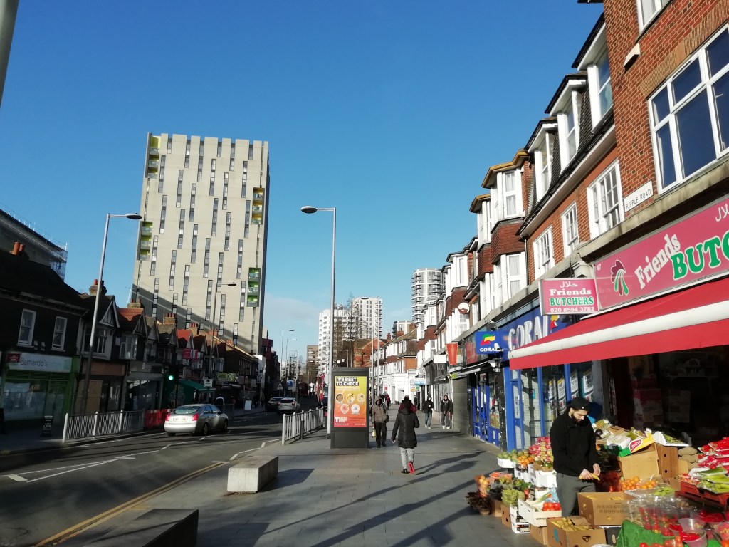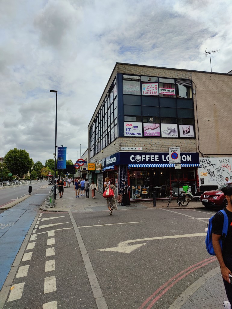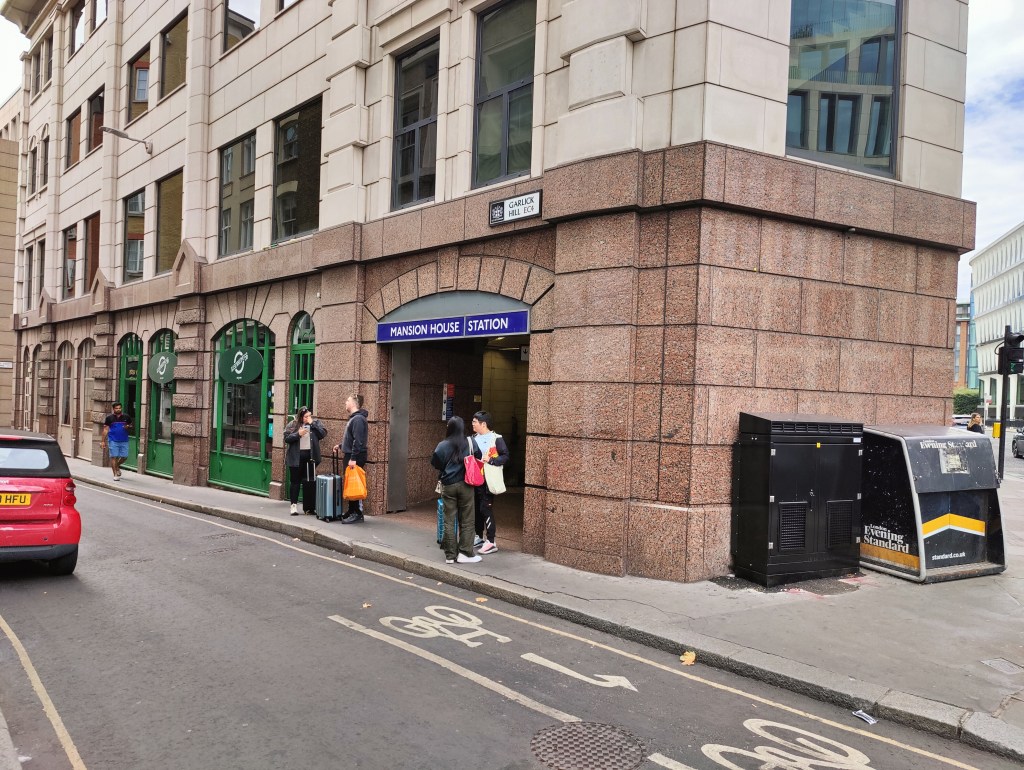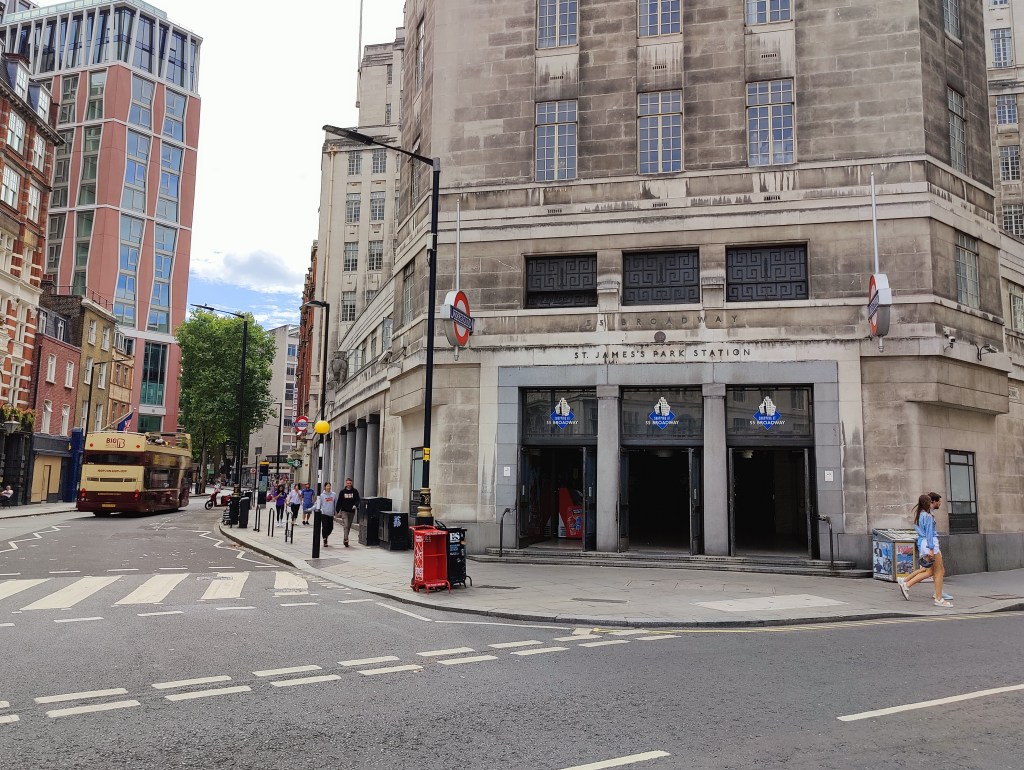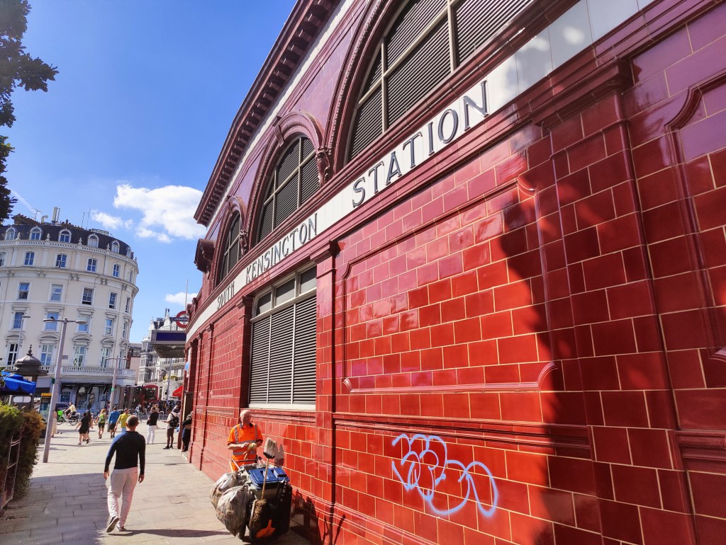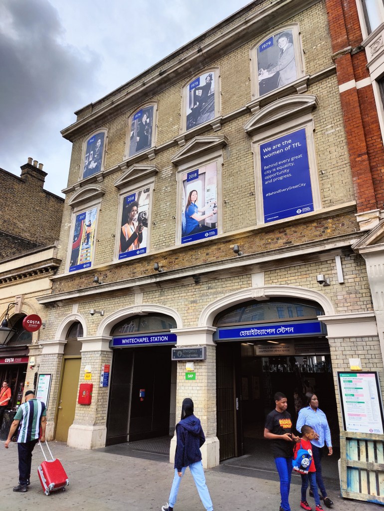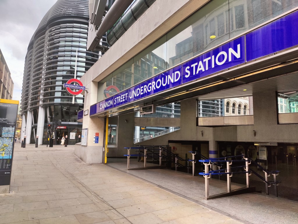 West Ham Station, with a change in shops outside since we visited in JanuaryThe Greenway in West HamChannelsea River in West HamThe ArcelorMittal Orbit from The GreenwayRiver Weir from The GreenwayCoffin by a houseboat on the River LeaBy the River LeaBy the River LeaBromley-by-Bow StationBow Road StationMile End StationRegent’s Canal at Mile EndMile End RoadStepney Green StationThe New Royal London Hospital (with the old hospital building now Tower Hamlets Town Hall)Whitechapel Station – the only bi-lingual station sign on the tube netwok (English & Bengali)Aldgate East StationCity Parking – Fenchurch StreetTower Hill StationMonument StationCannon Street StationMansion House StationBlackfriars StationOn The Victoria EmbankmentTemple StationEmbankment StationOn The Embankment towards Parliament BridgeWestminster StationBig Ben & The Houses of ParliamentParliament SquareSt James’ Park StationVictoriaVictoria StationSloane Square StationSloane SquareSouth Kensington StationGloucester Road StationEarls Court StationHigh Street Kensington StationPremium Housing Stock at Brunswick Gardens, KensingtonNotting Hill Gate StationBayswater StationPaddington Station. Perhaps the least attractive street in Central London.End of the line; Edgware Road Station