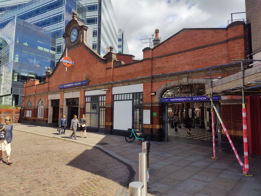 The Hammersmith & City line runs between Hammersmith in west London and Barking in east London. Printed in pink on the Tube map, it serves 29 stations over 15.8 miles (25.5 km). Between Farringdon and Aldgate East it skirts the City of London, hence the line’s name. Its tunnels are just below the surface and are a similar size to those on British main lines. Most of the track and all stations are shared with either the District, Circle, or Metropolitan lines. Over 114 million passenger journeys are made each year on the Hammersmith & City and Circle lines.