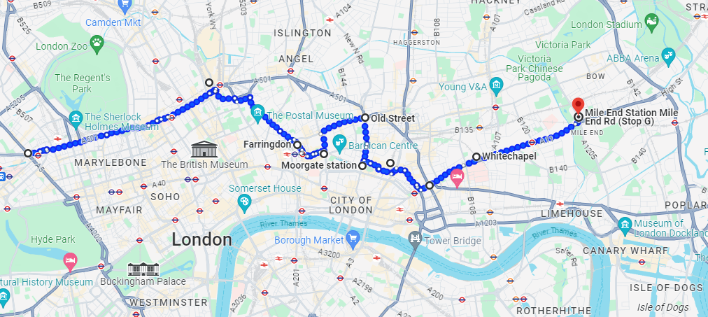 Day Two – 30th December 2023 – 8 Miles – Edgware Road to Mile End