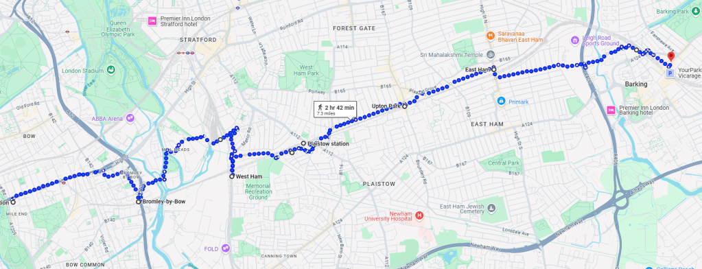 Day Three – 29th December 2024 – 7 Miles – Mile End to Barking